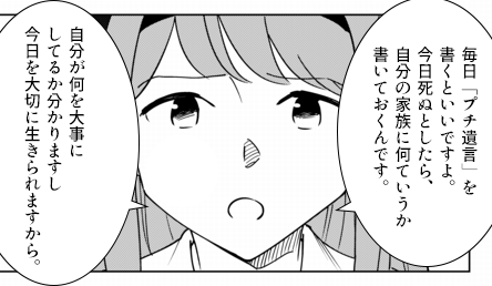 つまり、プチ遺言を書くことは「生き方を再確認する行為」でもあるのです。